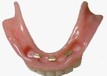 Een kunstgebit dat vastklikt op implantaten wordt een overkappingsprothese genoemd. In de kaak worden over het algemeen twee of vier implantaten geplaatst. Op deze implantaten kunnen drukknopjes, zie bovenste afbeelding links of een staaf-huls constructie geplaatst worden, zie bovenste afbeelding rechts.